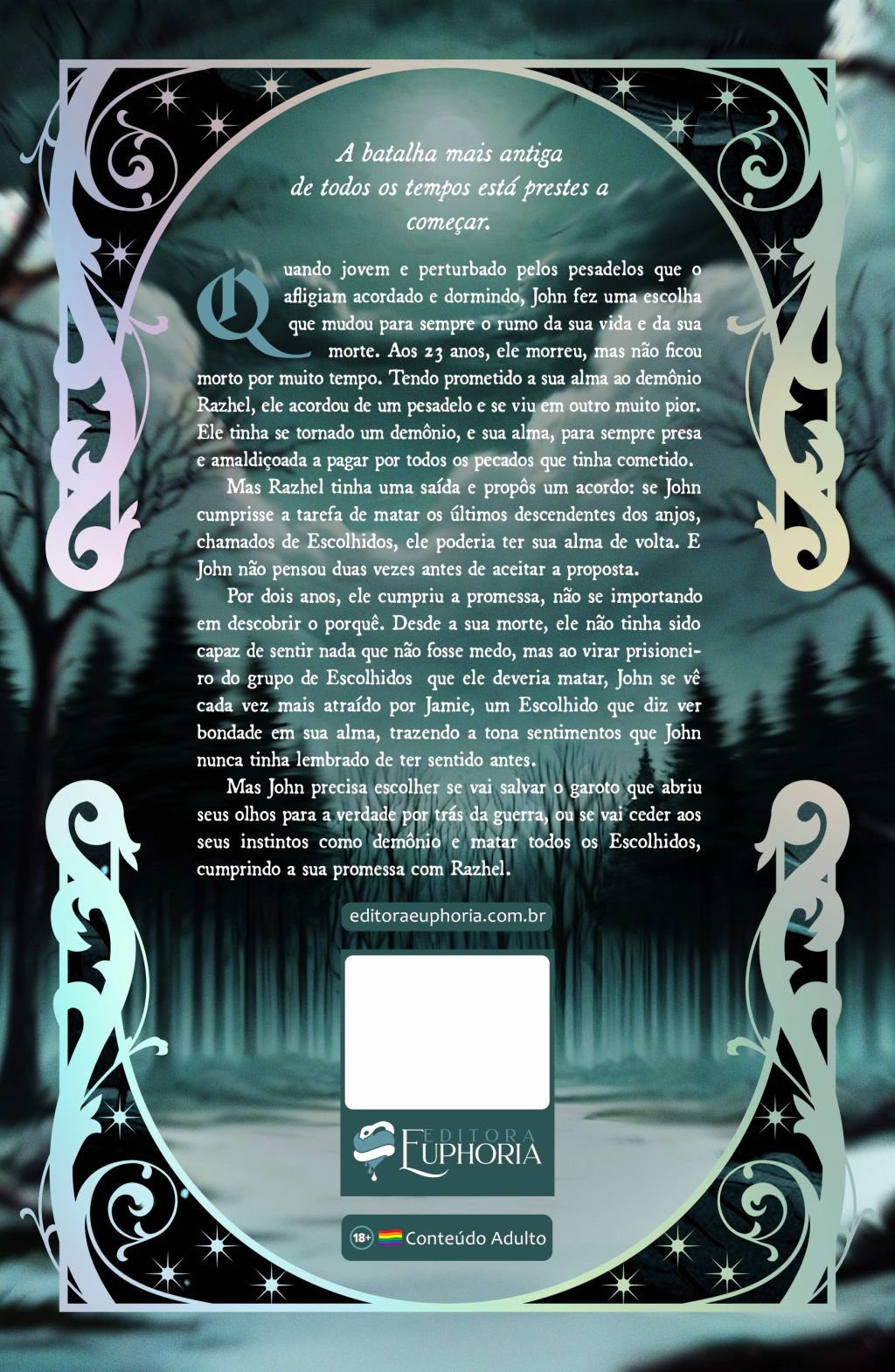 Por dois anos, ele cumpriu a promessa, sem se importar em descobrir o porquê. Desde a sua morte, não fora capaz de sentir nada que não fosse medo. Mas, ao se tornar prisioneiro de um grupo de Escolhidos que deveria matar, John se vê cada vez mais atraído por Jamie — um Escolhido que afirma ver bondade em sua alma —, trazendo à tona sentimentos que John não se lembra de já ter sentido antes.